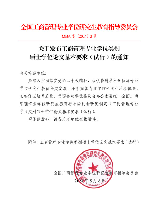 学位论文工作是专业学位研究生培养的重要组成部分,是培养研究生实践创新能力的主要环节,也是推进两类学位分类发展的关键一环。MBA学位论文的撰写是培养MBA学生解决行业产业实际问题综合能力的关键路径。
