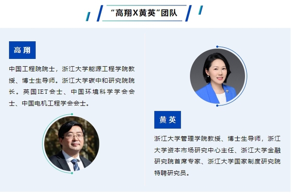 高翔院士长期致力于能源与环境领域减污降碳的应用基础研究和技术研发工作,在能源电力、船舶航运等行业取得了系列创新成果。黄英教授多年来从事财务管理、公司治理、风险投资、基金管理、可持续发展等相关问题的研究,至今已有50余篇智库报告被国家领导人、浙江省委省政府领导批示或中央有关部门采纳。