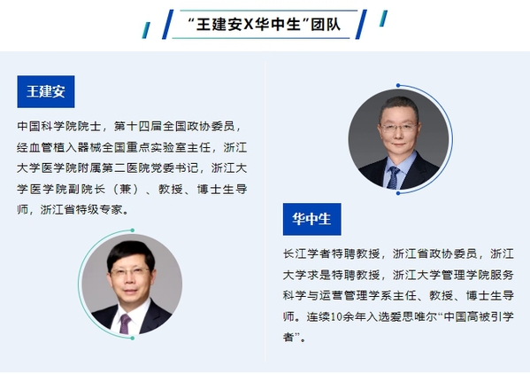 王建安院士长期从事心血管病的疑难疾病临床诊治和科学研究,创立、改良和完成了一系列最前沿、非开胸的经导管心脏瓣膜介入手术和具有独立知识产权原创器械,多项重要技术在国际或国内领先开展,被美国AHA/ACC联合指南在内的多部指南、共识收录。华中生教授长期从事服务科学与运作管理研究,发现了新媒体、数字服务平台等服务参与者行为的规律;构建了基于异构数据融合的预测与决策新方法和多源异质服务资源组织协调的新机制;提出了先进制造系统设计优化的新模式。