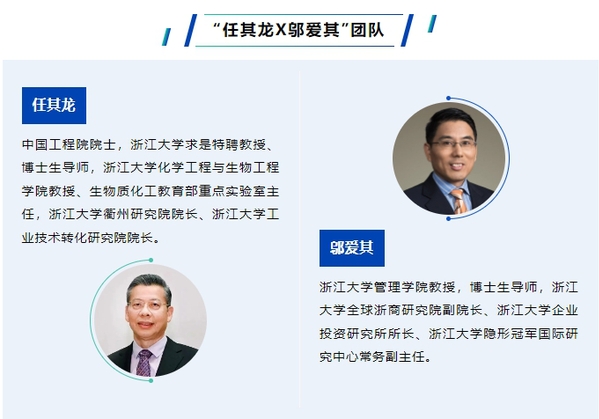 任其龙院士多年来从事化工分离技术领域的应用基础研究和工程实践,创建了分子辨识分离工程平台技术,解决了组分极复杂、分子极相似生物基原料的分离难题,实现十余种高端化工医药产品的高效制造,突破专利封锁、打破国外垄断,部分产品成为国际首创。邬爱其教授长期从事数字经济、战略管理、创业管理和产业发展领域的研究,兼任浙江省中小企业创业辅导师、工信部全国专精特新企业培育基地(杭州)产学研融合中心智库专家、德国隐形冠军协会中国区专家委员会委员,对单项冠军、专精特新企业的成长制胜之道有着深入研究。