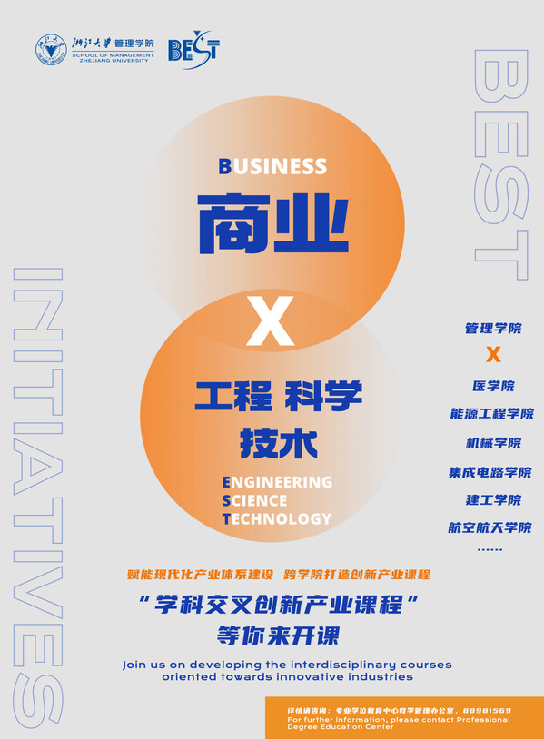 同时,为培养具有现代化产业体系前瞻性认知的创新型领导人才,更好地服务中国式现代化建设,浙大管院聚焦战略性新兴产业与未来产业,联合理工农医等学院共建了5门面向行业产业发展需求的“学科交叉创新产业课程”。这些课程由浙大管院资助建设,于次年面向管理学院专业学位学生和共建学院学生开设。