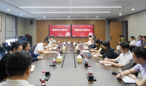 单珏慧代表学校党委宣读管理学院干部任免文件:王恩禹任党委副书记、党委委员,刘洋任副院长、党委委员,陈熹任副院长,杜健任副院长、党委委员;免去潘健的党委副书记、党委委员职务,免去杨翼的副院长职务,免去窦军生的副院长、党委委员职务,免去黄灿的副院长、党委委员职务。