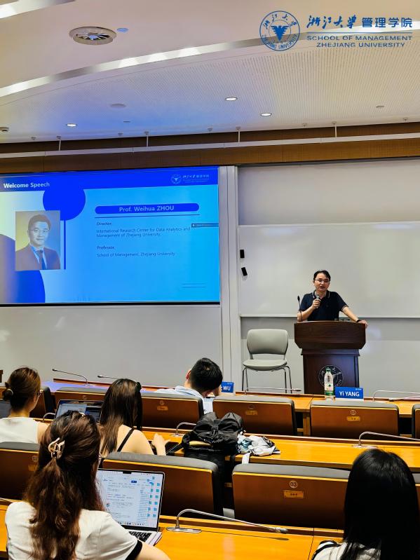 广发网页版教授杨翼出席开幕式并致辞。他表示,"在数据要素驱动商业变革的背景下,数智决策已成为企业高质量发展的核心引擎。本次活动汇聚国内外顶尖学者,聚焦大数据分析、人工智能商业应用等前沿议题,旨在为青年学者搭建高水平的学术交流平台。" 他代表学院向与会师生致以热烈欢迎,并强调浙江大学始终致力于推动管理学科与数字技术的交叉融合,期待与会者通过此次活动深化理论和实践探索,激发创新思维。