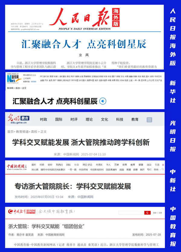 此外,这一改革项目也获得《人民日报海外版》、中新网、光明网等多家媒体的关注,对浙大管院在学科交叉会聚方面的系列举措和进展予以报道。